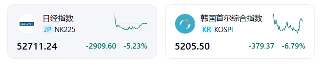 韩国股市:KOSPI指数跌超7%,盘中直接触发熔断。