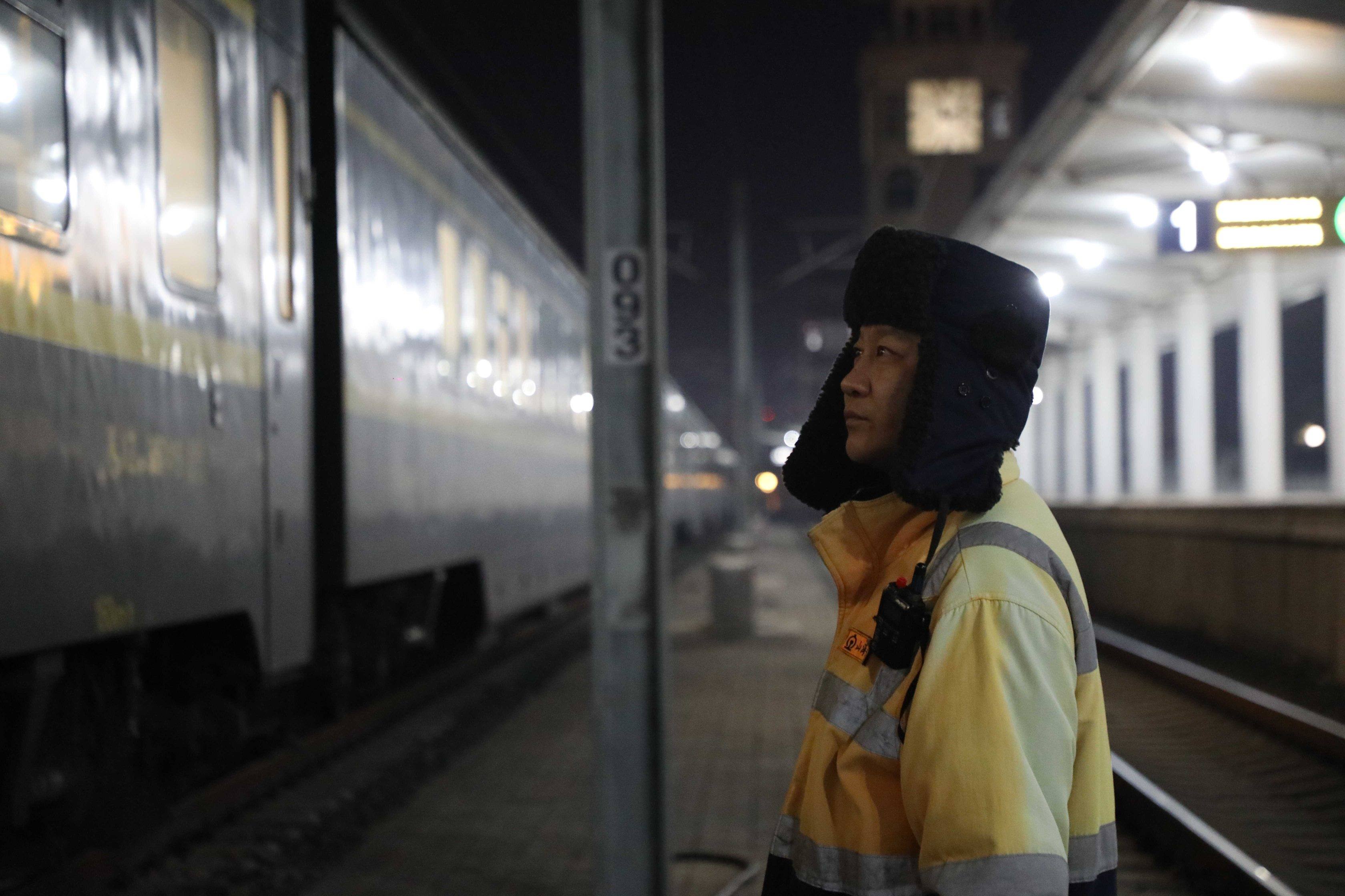 当除夕的祝福声响彻千家万户,几乎同一时刻,山海关站站内广播清脆响起:“工作人员请注意,由海拉尔站始发,途经本站,终到武昌站的K928次列车准备进入4站台6道,请做好接车准备……”广播声划破寒夜,客运车间42岁的给水员刘超立刻带领3名组员整装出发,他们抄起沉重的作业工具,列队整齐、步伐坚定地奔赴6道作业点,在寒风中静待列车进站。
