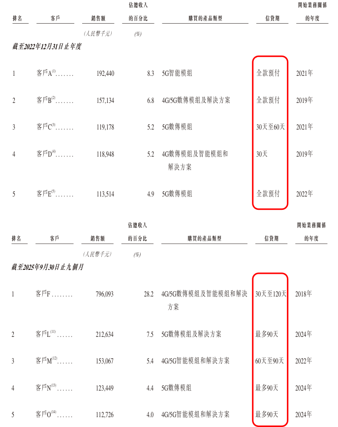 公司客户集中度持续走高,合作模式的转变进一步加剧了资金周转压力,贸易应收款项问题凸显。公司客户集中度呈逐年攀升态势,2022年前五大客户收入占比仅为30.4%,2025年前三季度已升至49.5%。更关键的是,公司与核心客户的合作模式从前期的预付款逐步转变为授予信贷期,直接导致资金回笼效率下降。