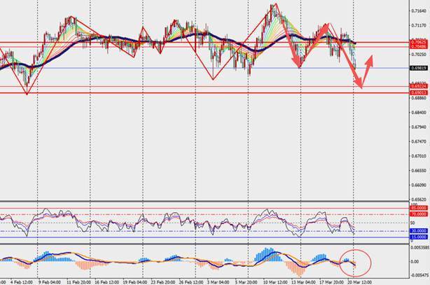 技术面:澳元兑美元H4级别大幅回落,并在48日多空分界线下方运行。此外,MACD双线和量能柱在零轴附近扩张。澳大利亚2月失业率仍处于相对低位,就业继续增长,进一步印证了澳大利亚央行的判断,经济仍具韧性,足以承受更紧缩的货币政策。
