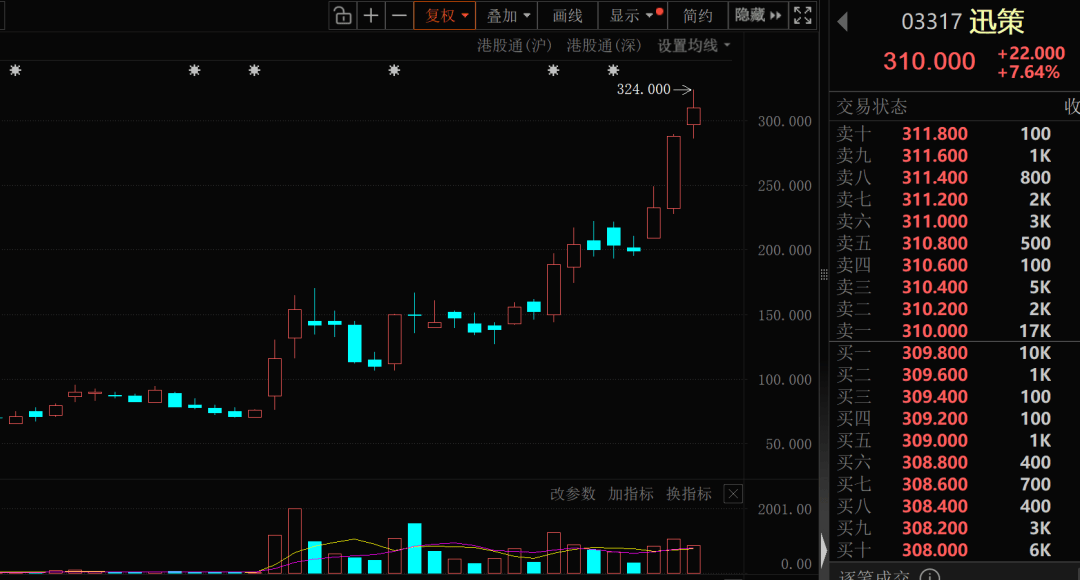 从行情上来看,成交活跃股本周以上涨为主,迅策涨幅居首,一周上涨56.17%,滴普科技、国泰君安(601211)国际、长飞光纤光缆随后,一周分别上涨52.53%、31.49%、17.67%;山东墨龙(002490)下跌7.9%,中国海洋石油跌1.85%。