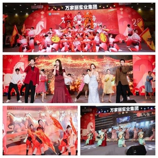晚会中,传统演艺、现代歌舞、非遗特色、语言类、器乐合奏与中华武术轮番上演,各类节目精彩纷呈,湖南本土著名笑星熊壮老师、湖南省歌舞剧院歌剧团副团长、国家一级演员莫娟娟老师倾情助阵,《鼓韵开章・战鼓展宏图》、《南北笑哈哈》 、《武韵贺岁开门红》、《万家丽是个好地方》、《万家丽的八大员》等节目赢得了观众阵阵掌声,应现场嘉宾呼声,黄志明董事长即兴演唱一首《我的中国心》,将晚会推向了整场高潮。