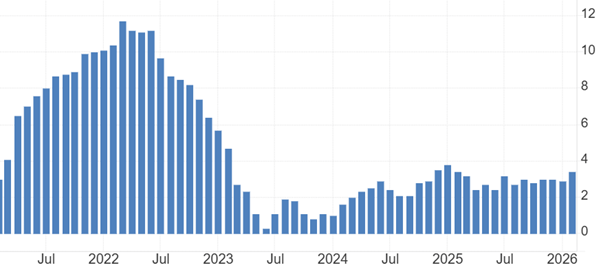 三月份PPI年率的预期值是4.6%,远远高于前值3.4%,意味着三月份美国的生产端物价出现了剧烈波动。三月份PPI月率的预期值是1.2%,高于前值0.7%,同样意味着生产端价格升高。驱动价格上涨的因素有目共睹,美国和伊朗之间的战争导致国际油价从六十美元以下上涨至一百美元以上,能源价格成为推高美国以及其他国家通胀率的核心因素。上周美国公布的CPI数据也印证了这一观点。