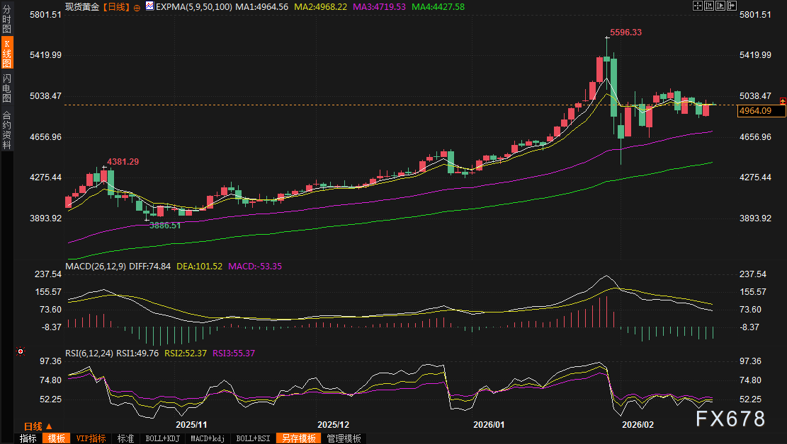 北京时间08:05,现货黄金现报4962.82美元/盎司。