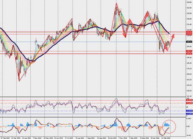 第一阻力位:220.00 第一支撑位:197.00