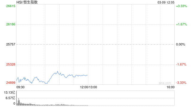 3月9日消息,港股三大指数集体下跌。截至午间收盘,恒生指数跌2.55%,报25101.16点,恒生科技指数跌2.34%,国企指数跌1.83%。盘面上,科网股普跌,哔哩哔哩、网易、百度跌超4%,阿里巴巴、快手跌超3%,京东、联想跌超2%;油气股逆势上涨,山东墨龙涨超49%;航空股下挫,中国国航跌超7%;今日三只新股上市。