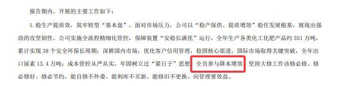 年报显示,泸天化报告期内树立起过“紧日子”思想,全员参与了降本增效。