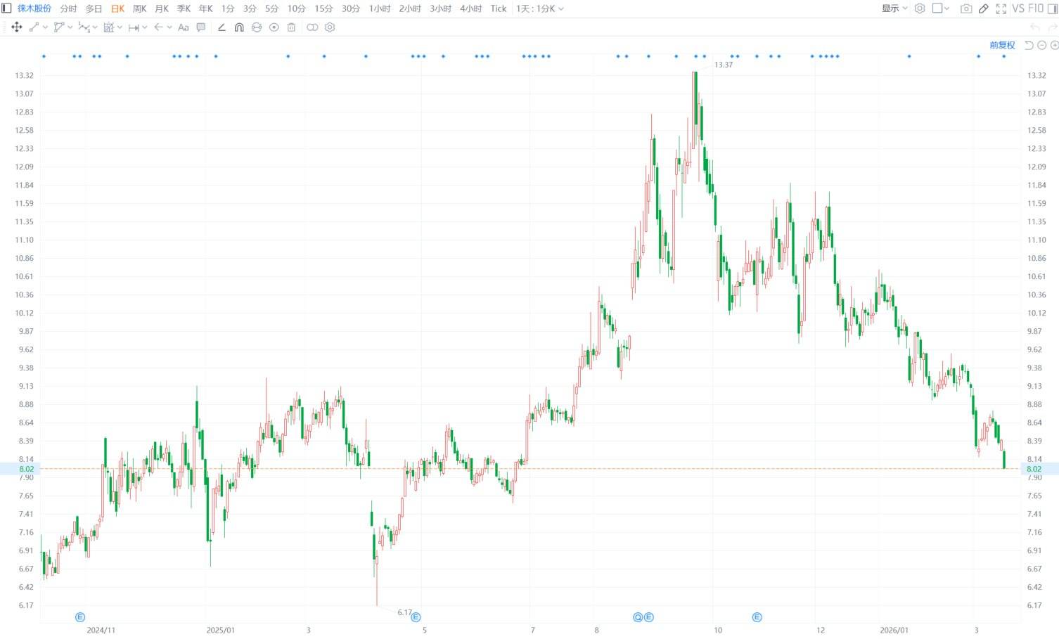 徕木股份(603633.SH)今日低开低走,午后跌幅扩大至4.64%报8.01元,股价创去年6月25日以来近9个月新低。徕木股份公告称,控股股东、实际控制人方培教计划自2026年4月8日至2026年7月7日,通过集中竞价及大宗交易方式合计减持不超过1280.43万股,占公司总股本的3%。减持股份来源为IPO前取得及资本公积金转增等,减持原因为自身资金需要。(格隆汇)