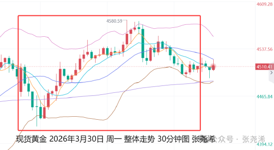 3月31日:上交易日周一(3月30日):国际黄金震荡收涨,维持近期的震荡格局,且对于原油和美元的走强反应有所脱敏,同时鲍威尔释放长期通胀预期仍受控的鸽派信号,市场撤回对美联储今年加息的押注,这暗示后市有望在筑底震荡后再度转强攀升,重回5000美元关口或上方。下方则关注近期震荡区间底部支撑,以及布林带下轨支撑附近选择进场。