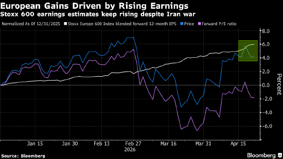 其他个股方面,半导体设备制造商ASM International NV股价上涨7.1%,创纪录新高,此前该公司公布的第一季度营收超出预期。