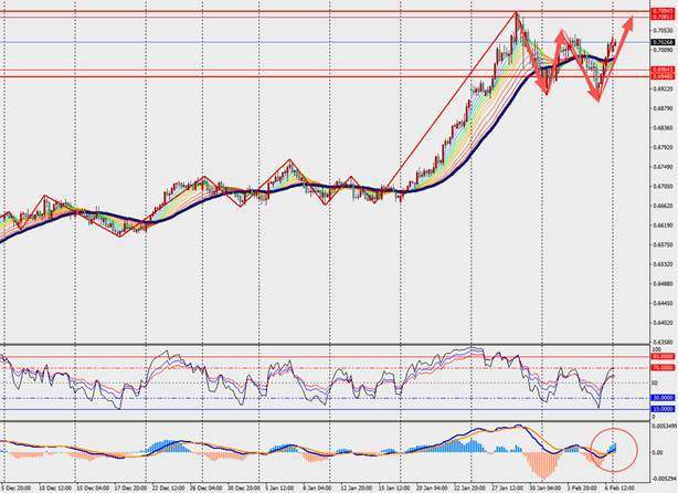 技术面:澳元兑美元H4级别再次反弹,并在48日多空分界线上方运行。另一方面,MACD双线和量能柱在零轴附近扩张。尽管经过此前的加息周期,甚至2025年转入了降息周期,但澳大利亚的通胀率一直没有能持续回到目标区间。