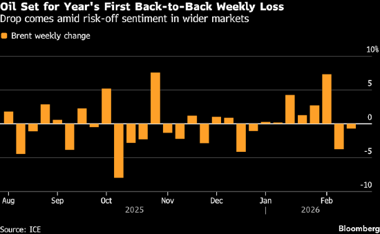 油价有望出现今年以来首次连续两周下跌,因交易员在权衡欧佩克+可能增加供应、美伊核谈判进展以及本周早些时候整体市场疲软等多重因素。