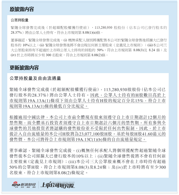 3. 公众持股量及自由流通量披露错误:公告中“公众持股量及自由流通量”章节存在两处关键问题,一是港交所上市规则条文引用错误,该部分内容在招股书中已有明确表述,却未在公告中准确沿用;二是关键信息披露缺失,反映出中介参与方对配售结果公告的披露要求理解不到位,或存在严重审核疏漏,三家联席保荐机构、高伟绅律师事务所、司力达律师事务所均未履行审核义务,核心审核环节出现明显缺位。