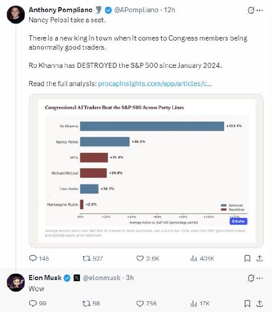 美国新一代“国会山股神”诞生,马斯克惊叹