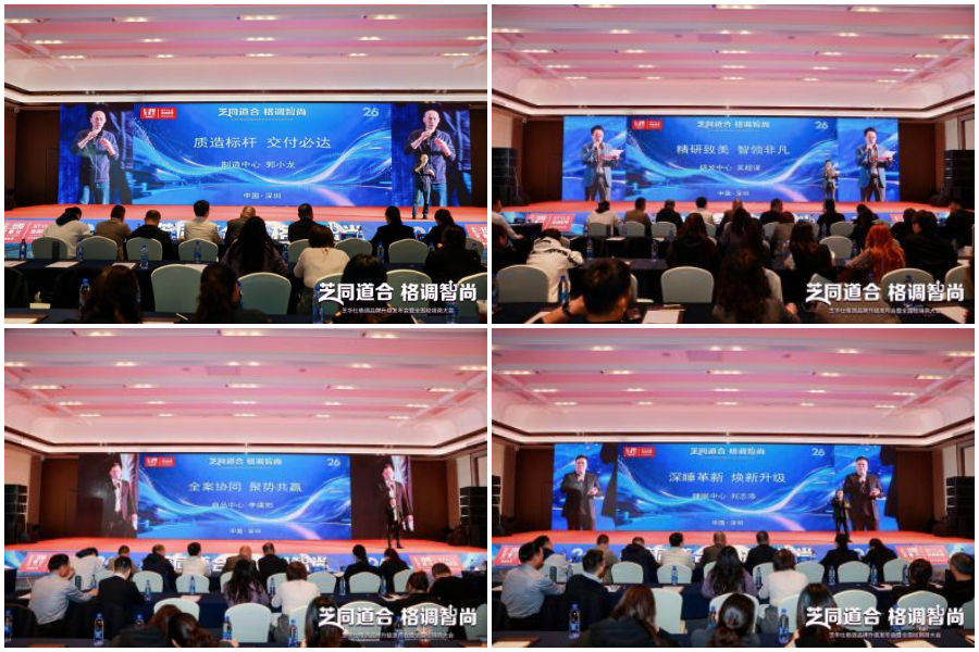 公司各核心部门负责人依次登台,分别围绕 “精研致美,智领非凡”、“制造标杆,交付必达”、“全案协同,聚势共赢” 与 “深睡革新,焕新升级” 的主题,郑重表达了在新一年中全力支持终端、推动品牌升级的坚定承诺。