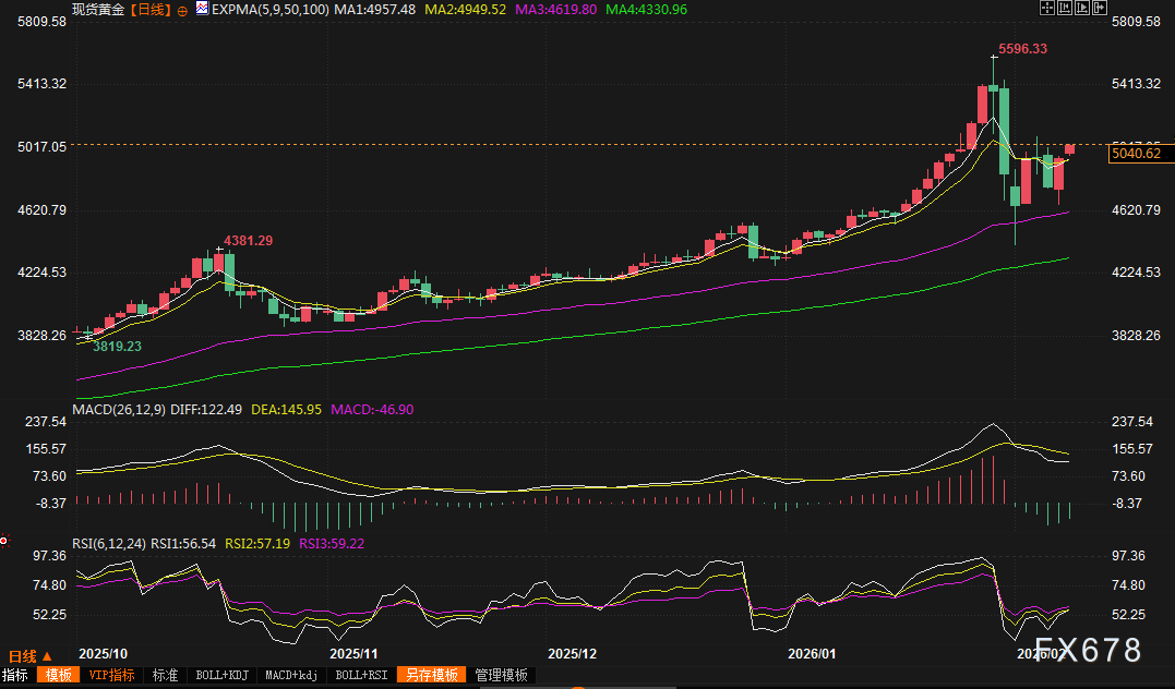 (现货黄金日线图,来源:易汇通)北京时间07:51,现货黄金现报5040.41美元/盎司。
