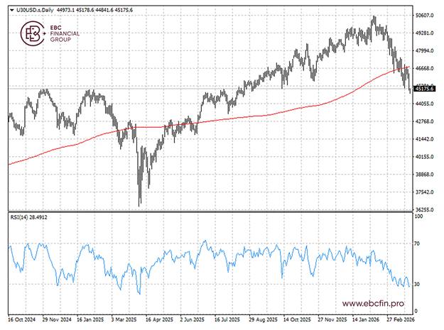 周一(3月30日)华尔街股市上个交易日暴跌,各大指数均收于数月来的最低点。随着持续一个多月的中东战争持续抑制市场风险偏好,道琼斯指数进入修正区间。