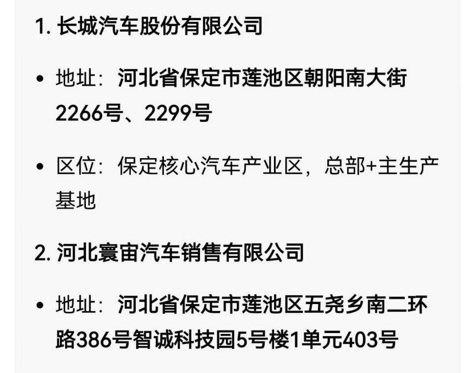 魏建军此次最新回应,叠加FF与河北寰宙的战略合作升级协议签署,进一步揭开FF与长城汽车的合作全貌:河北寰宙作为核心中间商,注册地与长城汽车同处保定市莲池区五尧乡,是链接FF与长城汽车双方资源、推动项目落地的关键纽带。