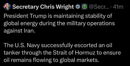 那条已被删除的帖子内容是:“美国海军成功护航一艘油轮通过了霍尔木兹海峡,确保石油持续流向全球市场。”