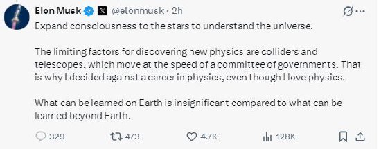 马斯克回应称:“将意识拓展至星辰之上,以了解整个宇宙。