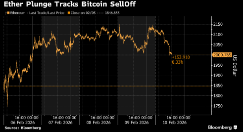 以太币一度下跌6%至1,994美元。纽约时间上午6:25下跌5%,报约2,014美元。